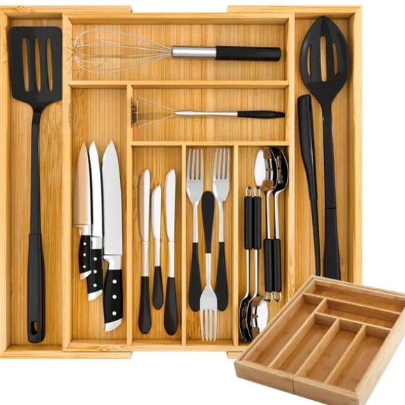 Inte bara bestick! Vår organisatör är tillräckligt rymlig för attäven rymmaandra köksredskap såsom knivar, gafflar, skedar, spatlar och mycket mer. Det är den perfekta platsen för en komplett organisation av dina köksessentials.