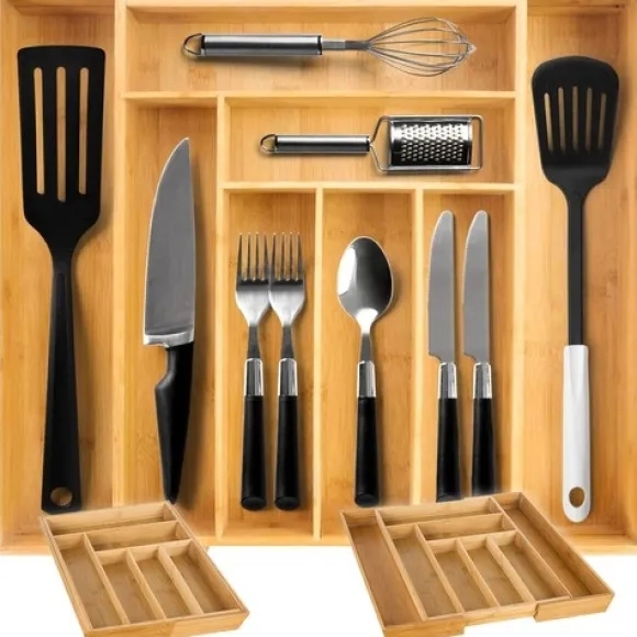 Denna lådinsats kombinerar skönhet och funktionalitet i en och samma produkt, perfekt för moderna kök där varje detalj räknas. Tillverkad av högkvalitativt bambuträ med snabbtorkande egenskaper och minimal bakterieabsorption, erbjuder denna organisatör en elegant lösning för att hålla köksredskap som skedar och knivar välorganiserade och lättillgängliga. Den enkla och rena designen passar smidigt in i vilket kök som helst, samtidigt som den säkerställer enkel rengöring under rinnande vatten utan risk för fuktabsorption.