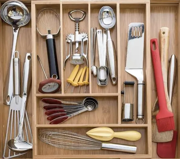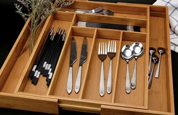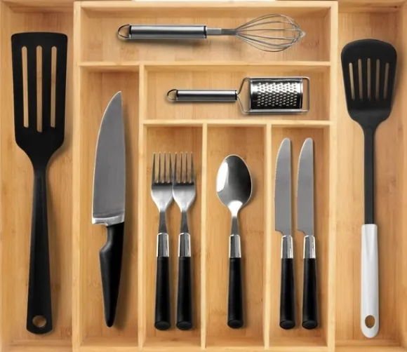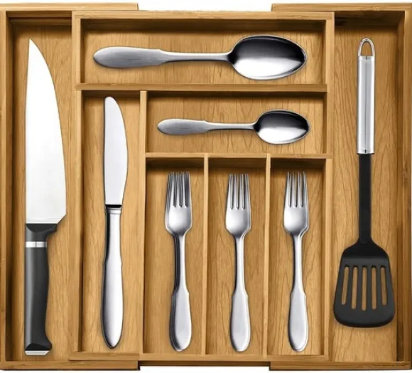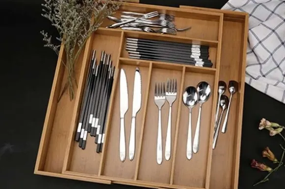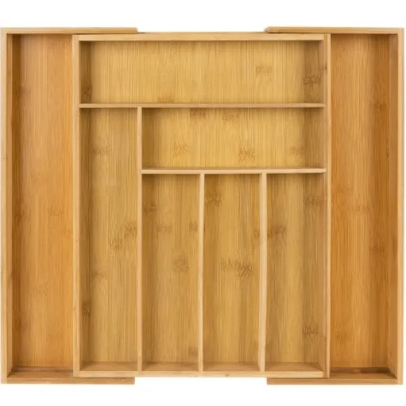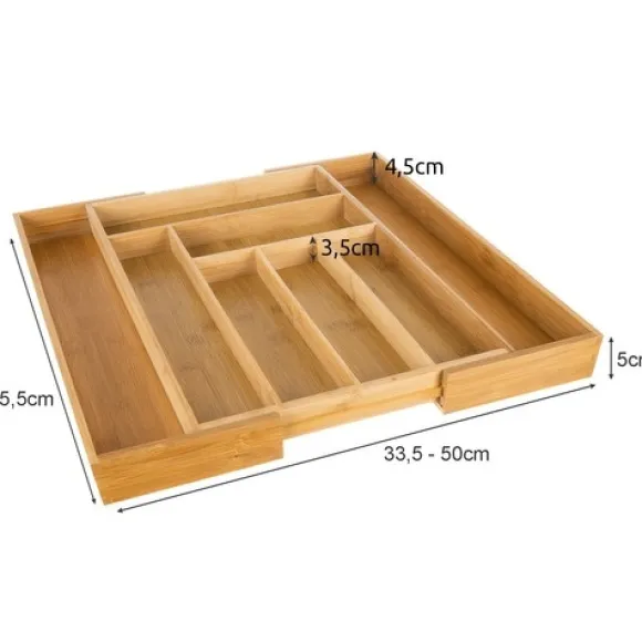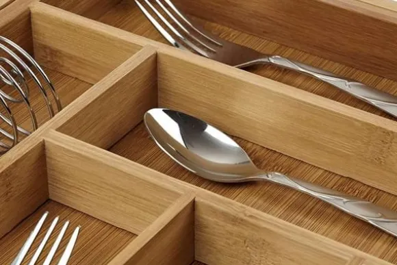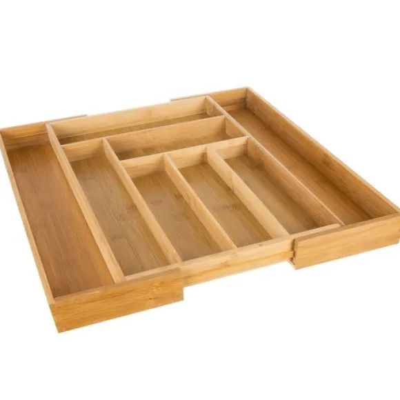 Den skjutbara designen av lådinsatsen är dess verkliga höjdpunkt, vilket gör den justerbar från 6 till 8 fack beroende på dina behov. Detta flexibla system gör det enkelt att anpassa bestickinsatsen för att passa både större och mindre köksredskap, vilket ger en anpassningsbar lösning för all köksförvaring.