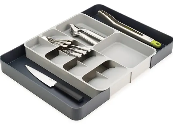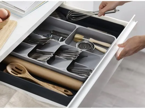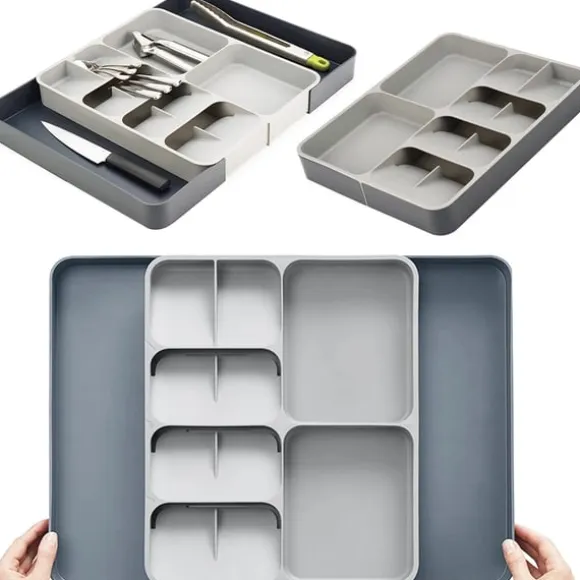 Håll ordning i kökslådan med en praktisk och justerbar bestickinsats – rymlig, stilren och enkel att rengöra!