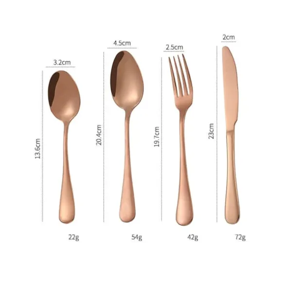 Bryt den gamla silvertrenden med dessa färgade bestick som ger dukningen en intressant touch! Välj mellan olika set och pryd matbordet med gyllene guld, varm rosé, modern svart eller färgrik regnbåge! Setet innehåller en gaffel, kniv, sked och tesked tillverkade av rostfritt stål att fylla ut besticklådan med. Besticken har en klassisk look som passar väl till finare serveringar när man vill skapa en speciell matupplevelse åt gästerna.