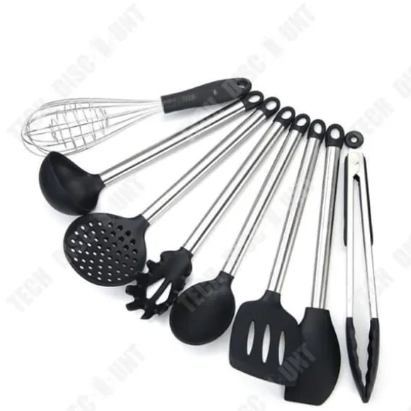 Upptäck vårt TD® bestickset med 8 delar, tillverkat i silikon och rostfritt stål. Värmebeständigt, skyddar det dina kastruller samtidigt som det erbjuder en exceptionell hållbarhet. Idealisk för alla dina matlagningsbehov.