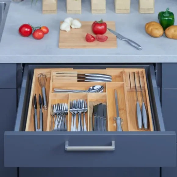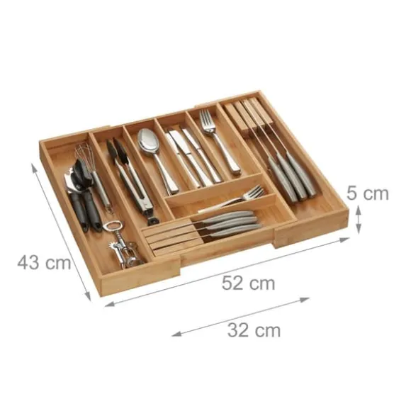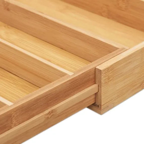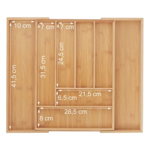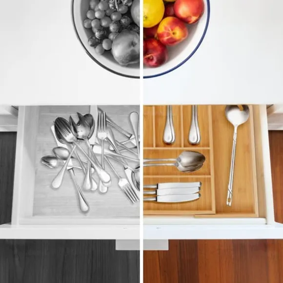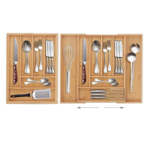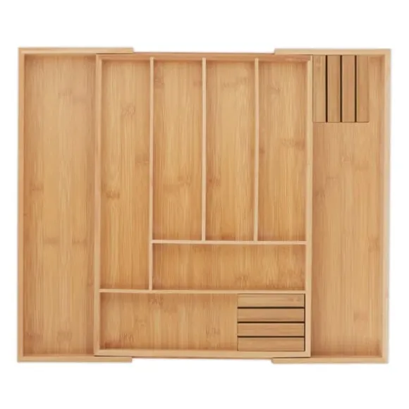 Håll dina kökslådor organiserade med denna utdragbara besticklåda i bambu, designad för att rymma en mängd olika redskap och kökstillbehör. Den justerbara bredden och de flera facken säkerställer en perfekt passform för olika lådstorlekar, medan den naturliga bambukonstruktionen ger en modern och hållbar känsla till din förvaring. Denna mångsidiga låda passar även utmärkt för organisering av hantverks- eller sybehör.