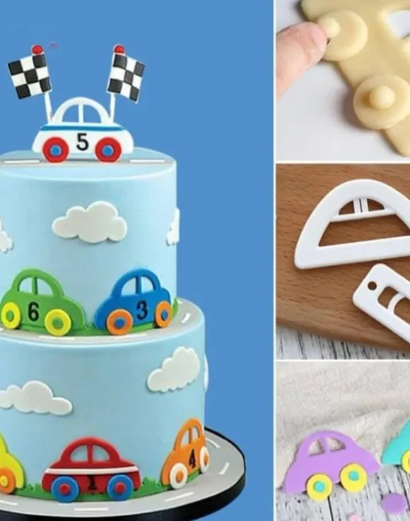 Två stycken tappits utstickare för att göra bilar. Med dessa utstickare är det superlätt att göra fantastiska sockerdekorationer, även för nybörjaren. En utstickare för en bil och en för hjul i olika storlekar. Dekorera tårtan, cupcakes eller andra bakverk med detta fina mönster. Används med t.ex. sockerpasta, marsipan, kakdeg eller gumpaste.