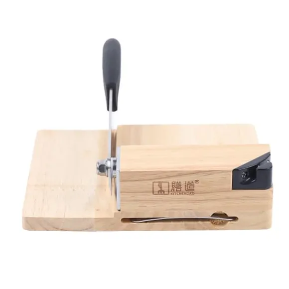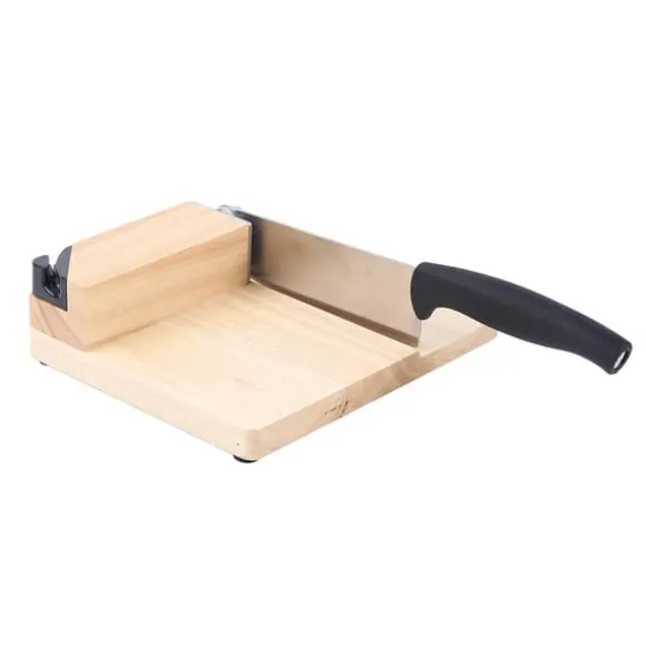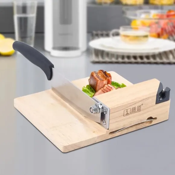 Biltong- och Jerky-skärare med ek-skärbräda – Beige hushållsgiljotin