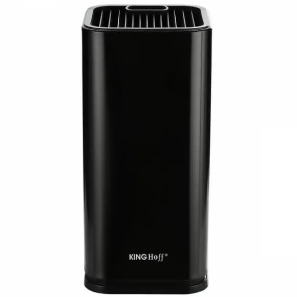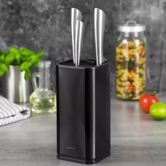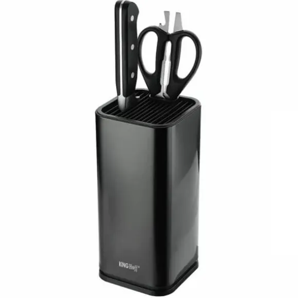BLOCK KÖKSKNIV STANDElegant, universellt svart stativ för köksknivar Egenskaper: Universell användning – du kan förvara vilken kniv som helst med valfri bladform, kökssaxar eller skedar.Modern fyrkantig design, högkvalitativ design gjord av lackerat rostfritt stål.Parallella slitsar separerar bladen, tack vare så att knivarna inte rör vid varandra, finns det ingen potentiell risk för att repa knivens egg i blocket Tillverkat av rostfritt stål, ett massivt block på Rostfria knivar med en innovativ fyrkantig design säkerställer att knivarna sitter stadigt Vattentät och halkfri botten – Designad för enkel rengöring, den har en avtagbar botten med ett dräneringshål. Antihalkfötter ökar stabiliteten vid utdragning av kniven och förhindrar repor på bänkskivan Storlek: 11 x 11 x 23,3 cm Färg: svart Rengöring: torka av med en fuktig trasa och milt rengöringsmedel, torka av Stativet är endast för illustrationsändamål och ingår inte i uppsättningen
