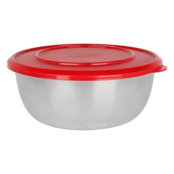 bol inox equinox 1,5l – perfekt för att laga och förvara dina livsmedel. denna skål i rostfritt stål Equinox med en kapacitet på 1,5 liter är perfekt för alla dina kulinariska förberedelser. dess hermetiska röda plastlock utan BPA garanterar färskheten hos dina livsmedel. lätt att rengöra och förvara tack vare sin stapelbara design, passar denna mångsidiga skål alla dina önskemål: vispa ägg, blanda kakor, lagra livsmedel, servera sallader, osv. diskmaskinssäker för enkel underhåll.
