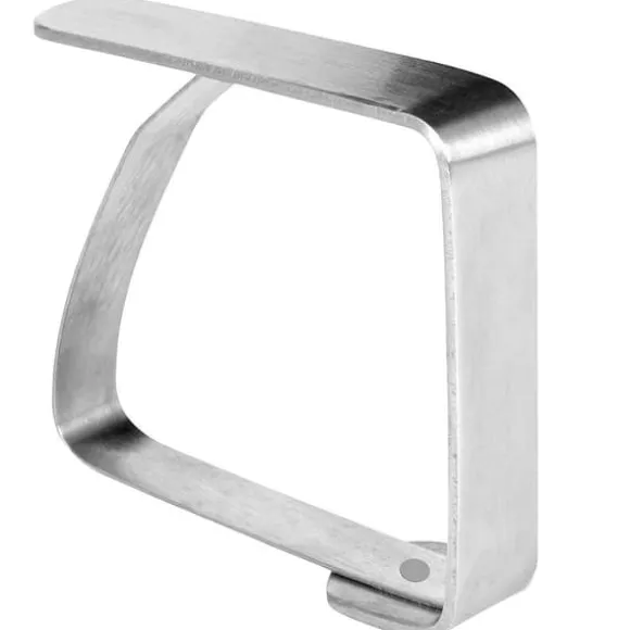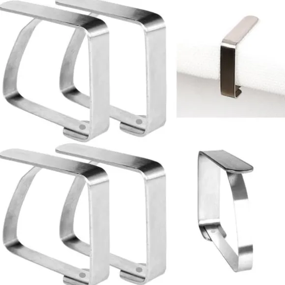Set med fyra bordsklämmor i stål. De hjälper till att hålla ditt bord organiserat och estetiskt tilltalande. De kommer att vara användbara i alla hem, trädgårdar, terrasser eller balkonger. Oumbärliga vid blåsigt väder under utomhusfester eller picknickar. Klämmorna förhindrar att materialet förskjuts och skrynklar sig. Originalprodukt från det tjeckiska märket Orion. Tillverkad i enlighet med europeiska standarder.