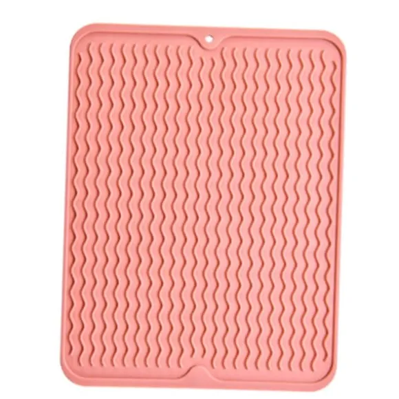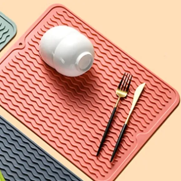 Denna bordstablett av gummi är gjord av mjukt och värmebeständigt material, vilket säkerställer hållbarhet och miljövänlighet. Den är perfekt för matanvändning och erbjuder en bra halkskyddseffekt, vilket förhindrar att tallrikar och skålar glider under måltiderna för ökad säkerhet. Dessutom fungerar den som en disktorkmatta med en dräneringsdesign för att hålla disk och grönsaker torra, vilket hjälper till att upprätthålla renlighet och organisation i köket.