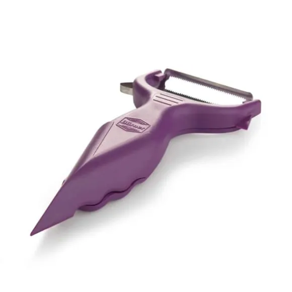 Med den ursprungliga Boerner garneringsskalaren kan du skala, dekorera, skära ut, riva och garnera. Det är sex funktioner i en enhet! Ett praktiskt rivjärn är integrerat på baksidan, med vilket vitlök eller ingefära kan rivas fint. Materialet som ska rivas faller direkt in i handtagskroppen och fångas upp helt. Ditt kök förblir rent. Den multifunktionella skalaren möjliggör särskilt effektiv peeling i båda riktningarna. Rengör helt enkelt under rinnande vatten efter användning. Produktdata: högkvalitativt blad av rostfritt stål livsmedelssäkra material robust rivjärn för ingefära, vitlök och muskot garnier öga och skärare precisionsfräsar praktisk citrusöppnare funktionell form lätt att använda och rengöra lämplig för vänster- och högerhänta fri från mjukgörare och BPA i färgerna: röd, Orange, grön, violett och vit
