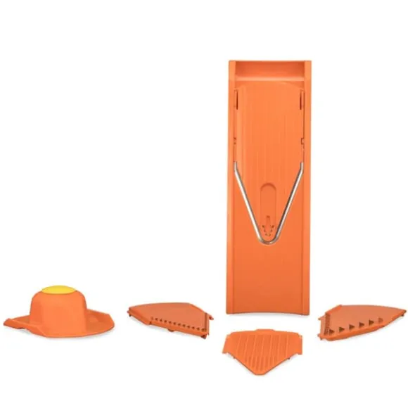 - Leverans omfattning: Startsetet består av en justerbar grönsaksskärare, en praktisk säkerhetsinsats, samt två insatser med blad som underlättar att skära julienne-remsor och en säkerhetsfrukthållare.