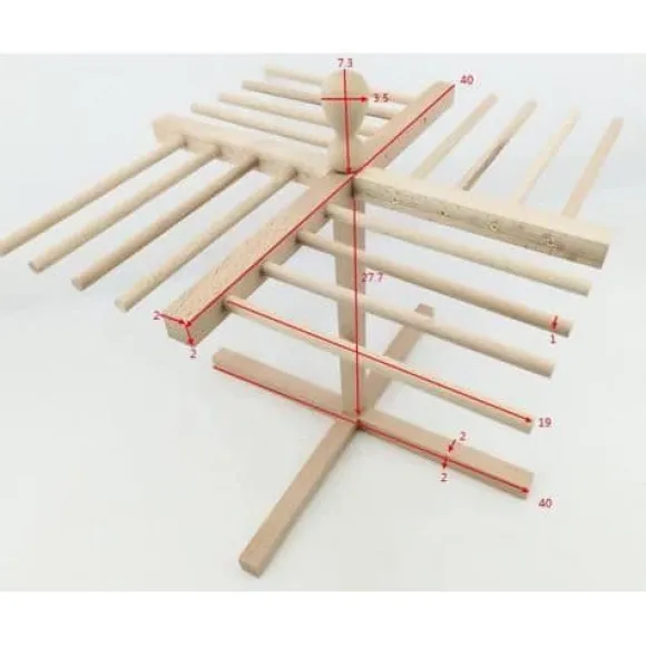Bred ut färsk pasta i trä med 16 stöd Torkställ för färsk pasta Torkar lång pasta som spagetti och tagliatelle Sirge Bred ut färsk pasta i trä med 16 stöd 40x40x39 cm Färsk pasta torktumlare Torkar dem