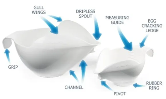 – Speciell kant som stabiliserar skålen när du ska hälla över innehåll till en annan behållare