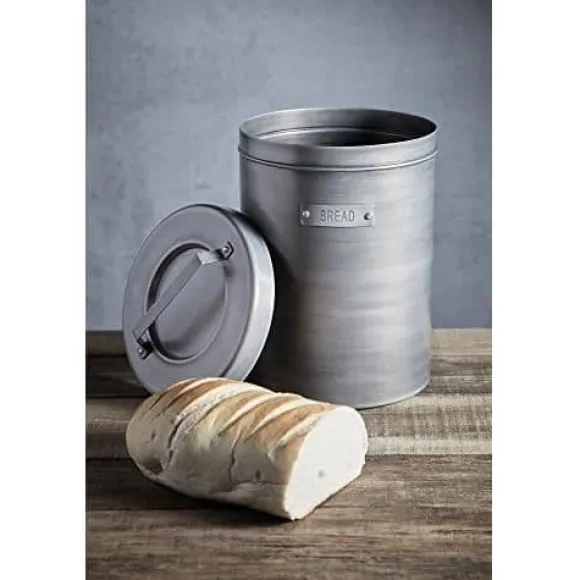 Denna brödlåda i gammal järnplåt förenar robusthet och vintageestetik. Perfekt för ett kök med retrostil, den mäter 23 x 23 x 34.5 cm och ger en chic touch till ditt utrymme.