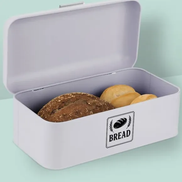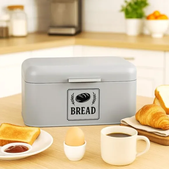 Denna brödlåda i retrostil är perfekt för att hålla bröd, frallor och bakverk färska samtidigt som den tillför en stilfull touch till ditt kök. Dess kompakta design med ventilationshål hjälper till att skydda bakverk från att torka ut, och den robusta metallkonstruktionen säkerställer hållbarhet för dagligt bruk.