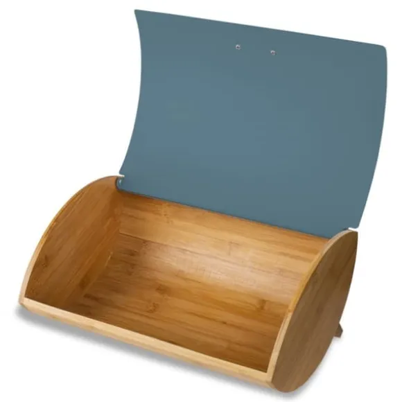 Brödförvaringsbehållare. – Kropp av bambuträ och lock av lackat rostfritt stål. – lätt att hålla ren. – mått: 35 cm x 25 cm x 15,5 cm