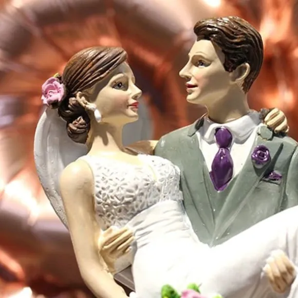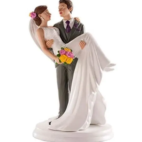 Denna 20 cm bröllopsfigurin i resin är idealisk för att dekorera era bröllopstårtor och tårtor i nivåer. Dess vita färg och blandade design gör den till ett perfekt val för att fira er stora dag.