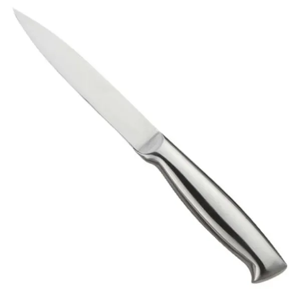 Kniv tillverkad av högkvalitativt Ferrinox 18/10 rostfritt stål med hög kolhalt 1.4028/X30Cr13 En viktig egenskap hos detta stål är det faktum att det är motståndskraftigt mot alla typer av repor, och kännetecknas av ökad motståndskraft mot nötning och korrosion. Blad av krom-molybdenstål, exceptionellt hårt, motståndskraftigt mot deformation, lätt att skärpa. Kniven är tillverkad enligt traditionell konst av ett enda stycke stål. Övergången mellan bladet och handtaget är sömlös. Handtagen är ergonomiskt formade och ger ett säkert grepp utan att glida. Bladlängd – 12cm Total längd – 24cm