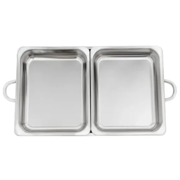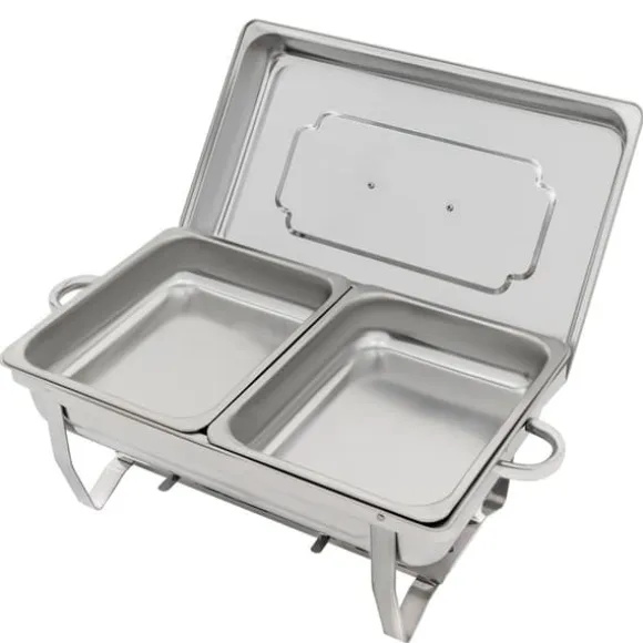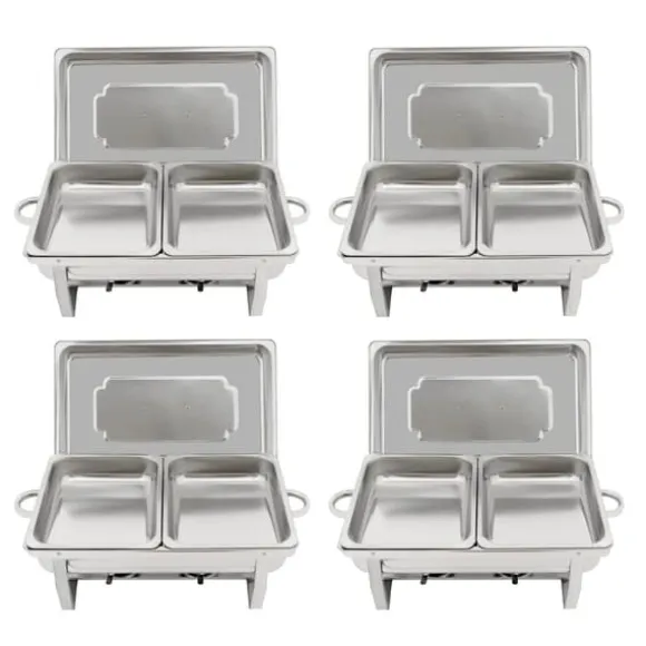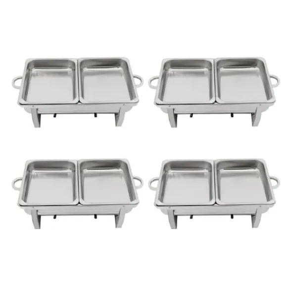 Varje chafing dish har en 9,5 Qt vattenbehållare och två 3,7 Qt matbehållare, vilket gör det enkelt att servera flera rätter åt upp till cirka 10 personer per enhet. Setet består av totalt fyra enheter för både små och stora tillställningar.