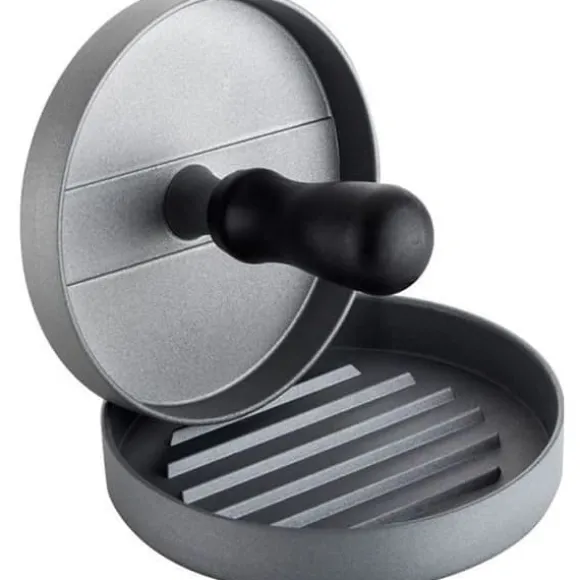 Denna hamburgerpress i aluminium med non-stick-beläggning gör det lättare att förbereda dina biffar. Dess design möjliggör snabb rengöring, även i diskmaskinen. Spåren skapar en perfekt skorpa, samtidigt som köttets densitet bibehålls. Ett praktiskt och effektivt köksredskap för dina grillar.