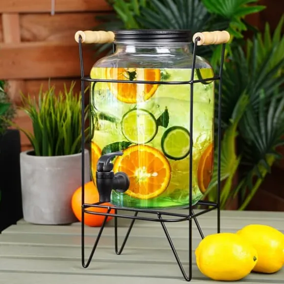 - MULTIPLAN– Den här burken med kran och stativ är perfekt för varma dagar. Den är lämplig för drinkar med fruktbitar eller is. Burken kan användas till trädgårdssammankomster såväl som till fester hemma. På en restaurang eller bar kan du visa te, iste eller smaksatt lemonad på rätt sätt.