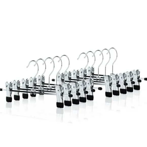Robust klädhängare: Tillverkad av förkromad rostskyddad metall som håller länge och som även klarar tyngre eller blöta plagg. Med slitstarka halkfria och justerbara clips.