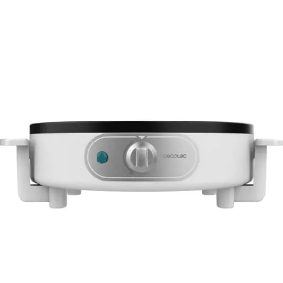 1200 W electric crepe maker with non-stick coating and adjustable power. Electric crepe maker, 1200 W. Non-stick coating that prevents food from sticking and achieves best results. Batter spreader and spatula included, for an easier use. Adjustable power to adapt to all tastes. Light indicator that lets you know when the crepe maker is ready to cook. On and off ligh indicator. Safe use thanks to its protection against overheating. 30.5-cm diameter plate. BPA-free. Crepe maker Rolling pin Spatula Instruction manual
