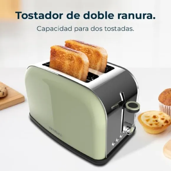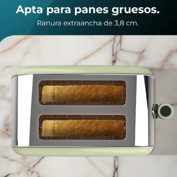Steel toaster with double short slot, 850 W power, and warming rack. Double short slot toaster with capacity for two slices of toast. 850 W power. 3.8-cm wide slot for thick or bigger toast. Stainless-steel finish. Top rack to heat large-sized food such as pastry or croissants. Automatic power-off and pop-up mechanism. Automatically-ejected toast when the program ends. Self-centring system to achieve a even toasting on both sides. Adjustable power, 7 toast settings for perfect results. Preset functions: Reheat and defrost function. Cancel button to interrupt the toasting process. Easy-to-remove crumb tray. Toaster, warming rack, instruction manual