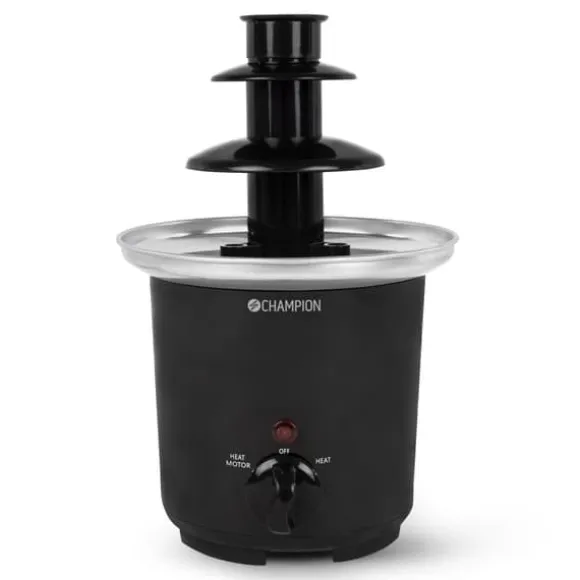 Champion chokladfontän är för dig som älskar choklad. Doppa dina favoritfrukter eller marshmallows i den smälta chokladen, med eller utan fontänfunktion. Maskinen värms upp på bara ett par minuter och rymmer ca 200g choklad per omgång.- Inställningar: Fontän och värmehållning- 90 W- Kapacitet: ca 200g/omgång- Skål: rostfritt stål- Fontän: 3 våningar- Mått: LxBxH 15x15x22,5- Vikt: 0,75kgAnvändarmanualEU-försäkranProduktblad