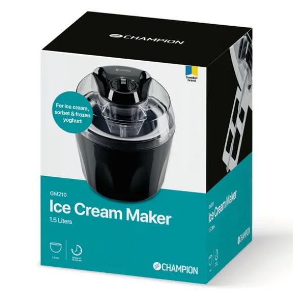 Med Champions Glassmaskin gör du hemmagjord, välsmakande glass snabbt och enkelt. Maskinen är lätt att använda och du gör läcker glass på 15–30 minuter. Läskande sorbet, krämig gräddglass eller hälsosam frozen yoghurt, välj ingredienser efter vad du är sugen på. Kapaciteten på hela 1,5 liter gör att du kan njuta av välsmakande glass tillsammans med flera vänner.