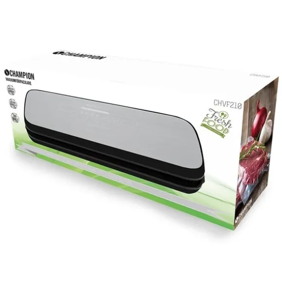 Exponering för luft kan få mat att förlora både smak och näring. Det kan också öka tillväxten av bakterier och jäst, vilket kan leda till att maten förstörs. Vakuummaskinen Champion CHVF210 tar bort luften och stänger in både smaken och färskheten. Vakuumförpacka morgondagens lunch eller njut av säsongens guldkorn längre – CHVF210 håller lättförstörda eller sällan använda ingredienser fräscha längre.