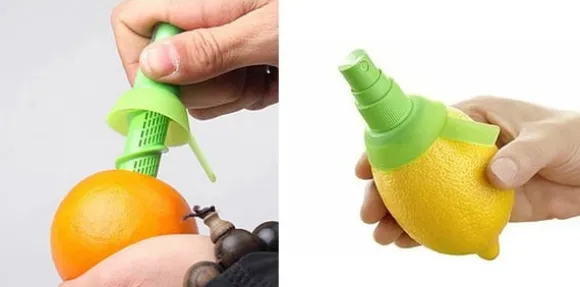 Tryck in den i en citrusfrukt och du kan sedan enkelt spraya citrussaft på maträtten, salladen, köttet osv.