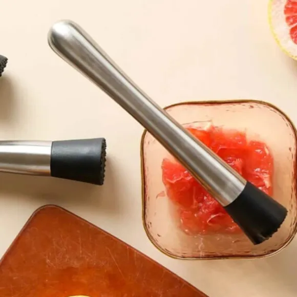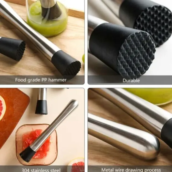 Tillverkad av högkvalitativt rostfritt stål, är vår cocktail muddlare både hållbar och enkel att använda. Dess ergonomiska design gör att den passar perfekt i handen och ger dig ett stadigt grepp när du muddlar dina ingredienser.