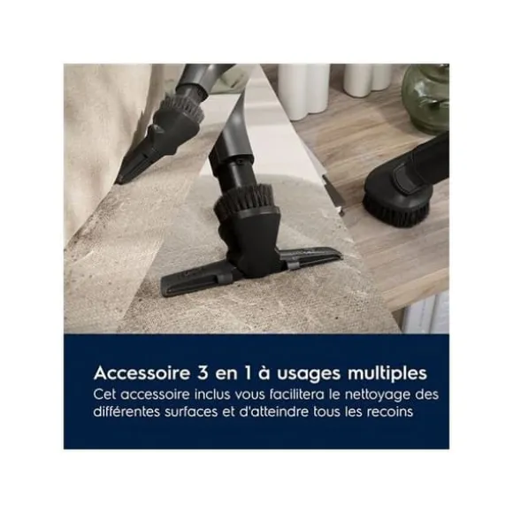 L’aspirator lång Electrolux 800 EB81U1DB, 650 W, denimblå, erbjuder effektiv rengöring på alla typer av golv. Med sitt HEPA-filter fångar den 99,99 % av partiklarna. Tyst (69 dB) och praktisk, den har en AllFloor LED Auto borste och en 9 m lång kabel för en aktionsradie på 144 m². 2 års garanti.