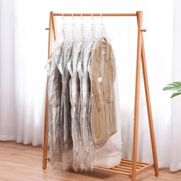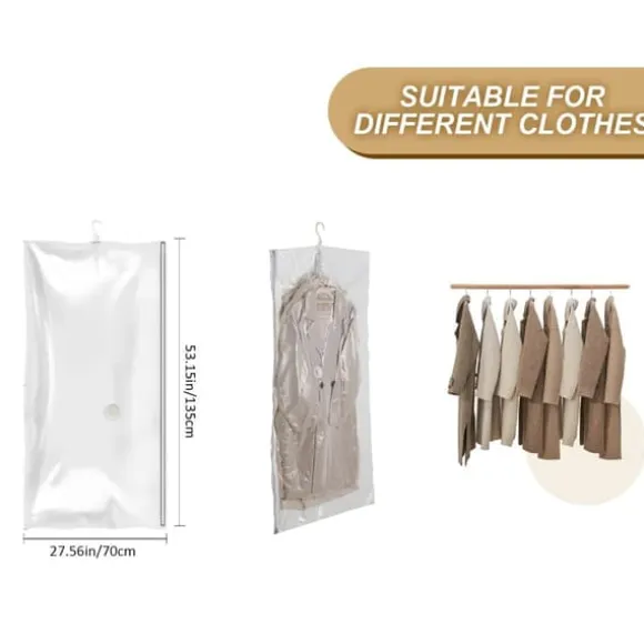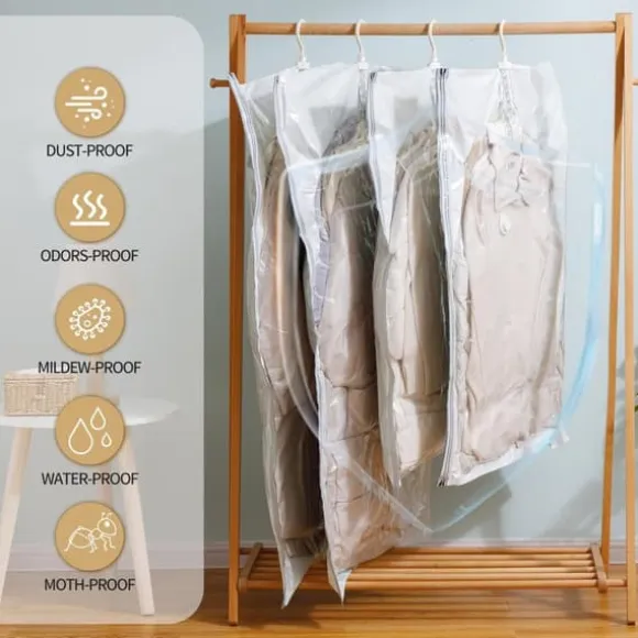 Varje påse är utrustad med en 360° roterande krok med fem ringar, vilket gör det lättare att komma åt och sortera kläder. Högkvalitativa dubbla dragkedjor och en envägssugventil garanterar täthet och hållbar kompression. Påsarna är vattentäta och lufttäta och skyddar kläderna från damm, fukt och obehagliga lukter.