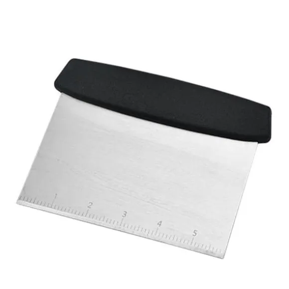Degskrapa tillverkad i rostfritt stål med ett svart handtag. Med hjälp av degskrapan kan du lyfta, vända, skära och skrapa upp din deg. Degskrapan har en måttskala i cm.