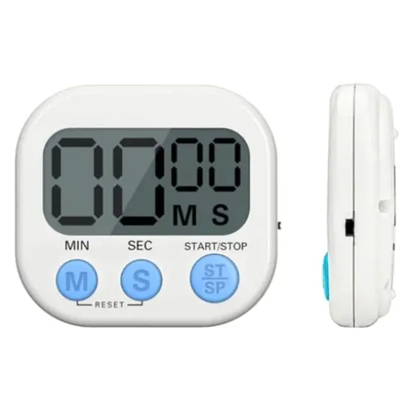 Denna kökstimer har en stor LCD-skärm med tydliga teckensnitt, vilket gör det enkelt för både vuxna och barn att läsa. Den kan räkna ner från vilken tid som helst till 99 minuter och 59 sekunder, tillsammans med ett larm som hjälper dig att hålla reda på tiden exakt. Timern kommer med fästen och en magnetisk design för enkel placering på valfri plats, tillgodose olika behov. Tillverkad av hållbart ABS-material, är denna multifunktionella timer lämplig för långvarig användning i kök, matlagning, bakning, läxor, träning och mer.