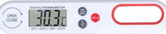 LCD kökstermometer med vikbar sond – mäter upp till 300°C