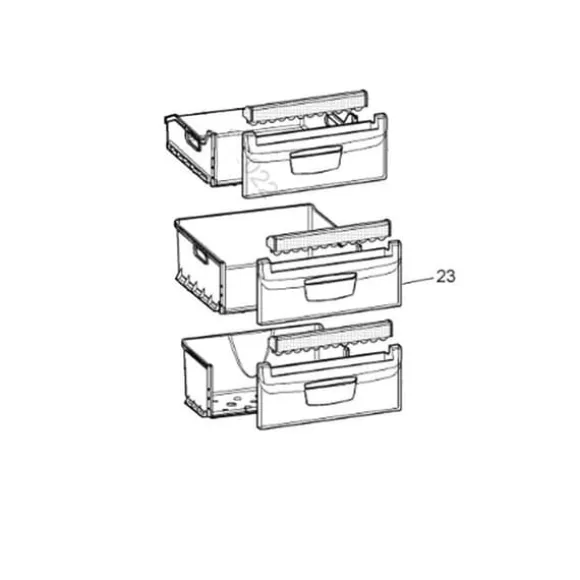 Dörrpanel FRONTSKÅP LÅDA FRYS LXH 430X240, originaldel från tillverkaren för kylskåp och frysar. Referens: 9522536. Kompatibel med flera modeller, idealisk för att ersätta en skadad låda.