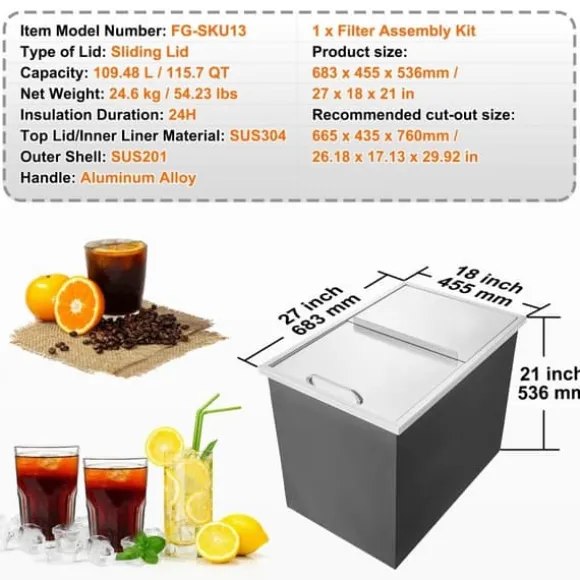 Den här isförvaringslådan har stor kapacitet och rymmer cirka 115,7 QT (109,48 L) is, vilket motsvarar ungefär 463 koppar 16 oz drycker. Perfekt för att hålla stora mängder is eller kyla olika drycker.