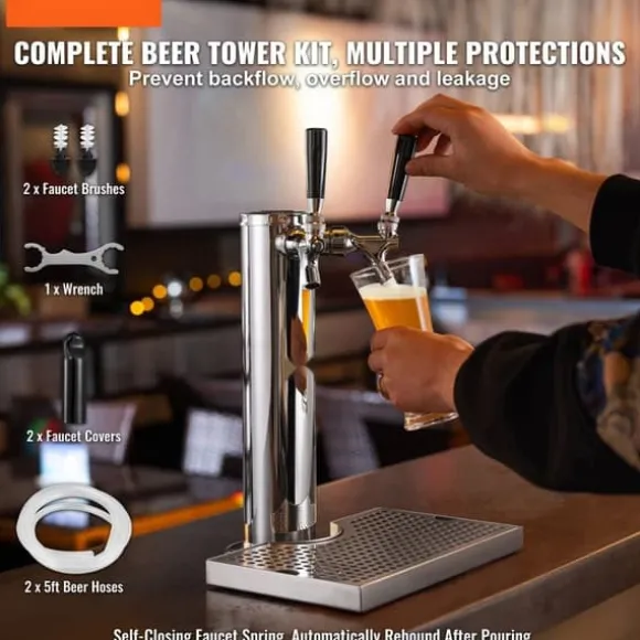 Tillverkad med rostfria pelare i rostfritt stål och förkromade ölkranar i massiv mässing med 304 kärnor i rostfritt stål, vårt öltorn i rostfritt stål med dubbla kranar säkerställer lång livslängd, hållbarhet mot slitage och bevarar den ursprungliga ölsmaken, perfekt för både hemsammankomster eller kommersiellt bruk.