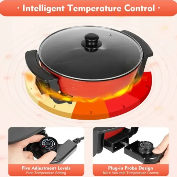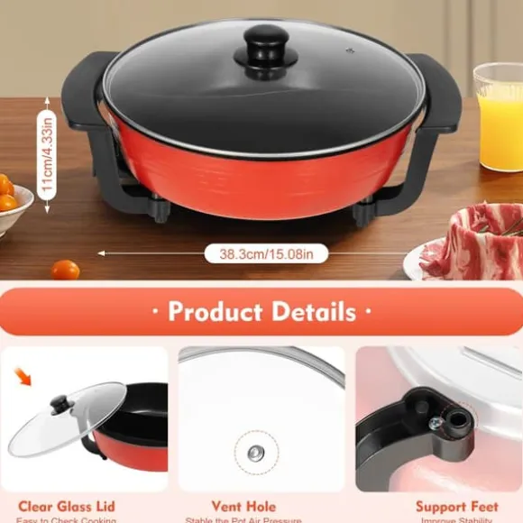 Mångsidig elektrisk hotpot för familj och vännerDenna elektriska hotpot kombinerar snabb, jämn uppvärmning med enkel hantering. Med integrerad grytdesign och högkvalitativ nonstick-beläggning fixar du stekning, kokning, långkok och hotpot – perfekt för middagar med 3–4 personer.