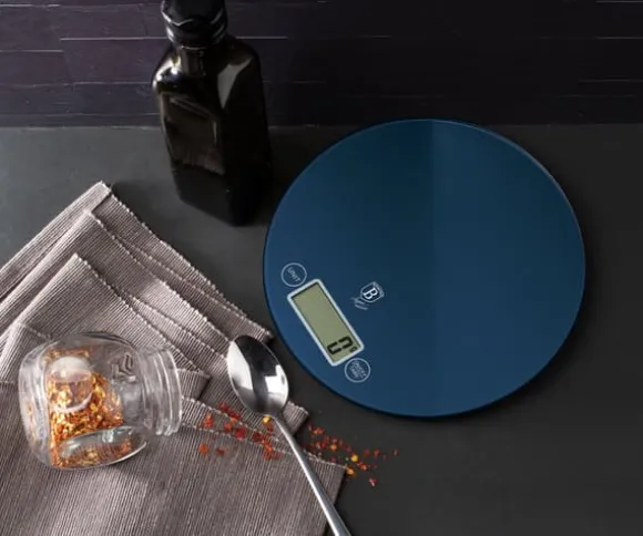 Superplatt BERLINGER HAUS köksvåg. Praktisk och estetisk i färgerna i Aquamarine-linjen, gjord av härdat glas. Vågens känslighet är 1g och maxvikten är 5kg. Indikationerna visas på en stor LCD-skärm med flytande kristaller. Den har en mycket bekväm automatisk nollställningsfunktion och en TARE-funktion. Det innebär att ingredienser kan läggas i en skål och vägas upp lite i taget utan att ta bort de tidigare ingredienserna som finns där. Denna modell är estetiskt gjord av högkvalitativa material. Vågen kan användas med eller utan något kärl. Färgerna matchar sortimentet av Aquamarine Collection kokkärl Egenskaper: Maximal belastning: 5000g Vågkänslighet: 1g LCD-skärm Automatisk återställningsfunktion Automatisk avstängning Tara-funktion Batteri som drivs av 2 x AAA Vägningsenheter: g / lb / oz / kg Material: glas och ABS-plast Färg: marinblå Viktmått: ⌀19cm x 2cm