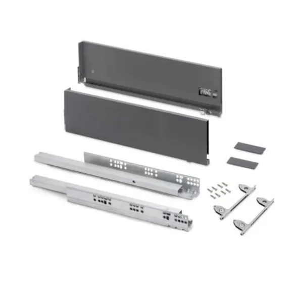 Kök och badrum lådkit Vertex med alla nödvändiga komponenter för montering. Det är den optimala lösningen för dina kök, badrum eller skåp med en elegant design. Varje kit består av alla nödvändiga komponenter för att montera en utvändig låda med höjd 178mm, dimensionerad för en paneltjocklek av 16mm för botten och baksidan av lådan. Innehåller: