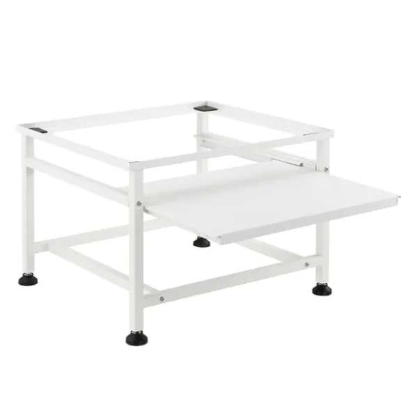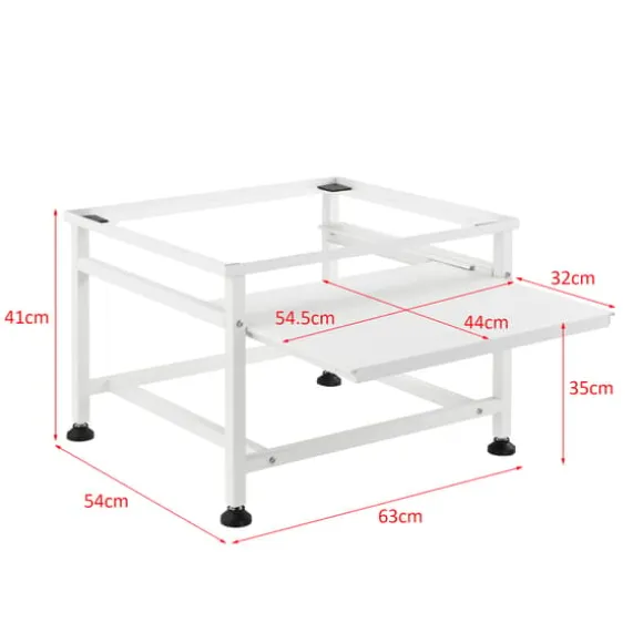 [en.casa]® Tvättmaskinstativ-Förhöjningssockel-med utdragbar hylla-63x54x41cm-pulverlackerat stål-vit-max.belastning:150kg