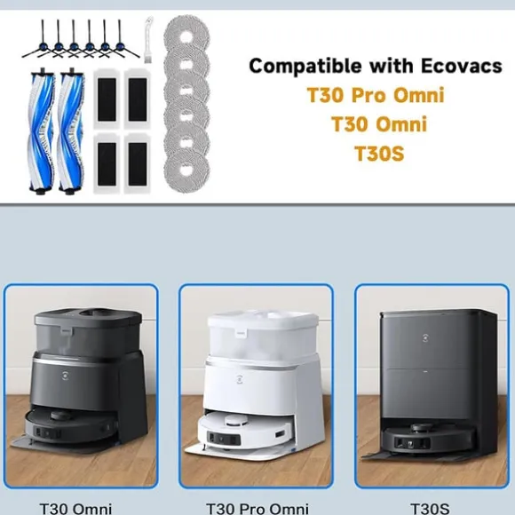 Omfattande ersättningsset: Detta kompletta reservdelspaket är utformat för ECOVACS T30 Omni, T30 PRO Omni, T30S och T30S PRO robotdammsugare. Kitet innehåller alla viktiga komponenter som behövs för att upprätthålla optimal rengöringsprestanda. Regelbundet byte av delar förlänger dammsugarens livslängd och håller ditt hem skinande rent. Ett praktiskt och kostnadseffektivt sätt att säkerställa att din robot fungerar smidigt och effektivt.