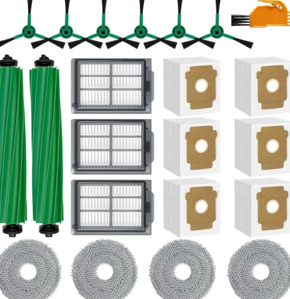 Komplett ersättningsset: Detta omfattande set innehåller allt du behöver för att underhålla din iRobot Roomba Plus 405/505 Combo. Med flera huvudborstar, sidoborstar, filter, dammpåsar och moppdukar kan du enkelt byta ut slitna delar och förlänga livslängden på din robotdammsugare. Setet innehåller även en rengöringsborste för att underlätta underhållet. Alla delar är kompatibla med iRobot Roomba Plus 405/505 Combo.