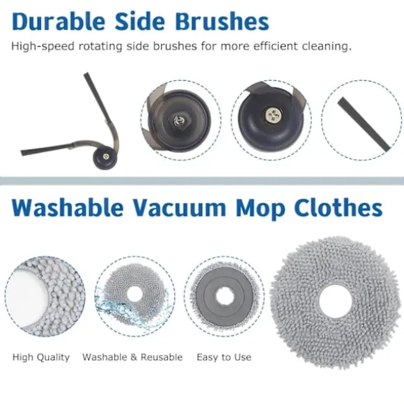 Komplett Ersättningsset: Detta omfattande ersättningskit säkerställer att din Roborock Qrevo QV35A/QV35S och QR598/QR798 robotdammsugare fortsätter att prestera på topp. Det inkluderar viktiga komponenter som huvudborstar, sidoborstar, dammpåsar, moppdukar och filter, vilket ger allt du behöver för regelbundet underhåll och optimal rengöringseffektivitet. Regelbunden utbyte av dessa delar hjälper till att förlänga livslängden på din robotdammsugare och säkerställer konsekventa rengöringsresultat på olika golvtyper. Håll ditt hem fläckfritt med denna allt-i-ett-lösning kompatibelt med Roborock.