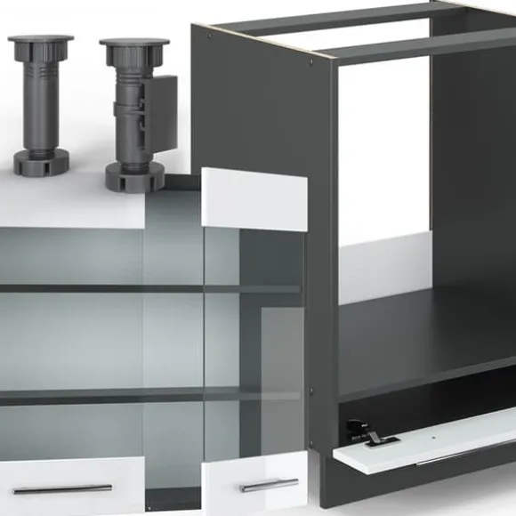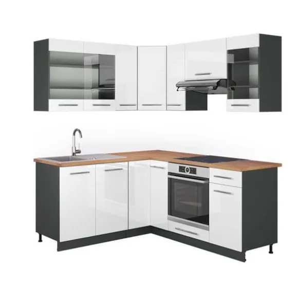 Fame-Line hörnkök, 160 x 190 cm, PT Ek, Blank vit/Antracit, Vicco