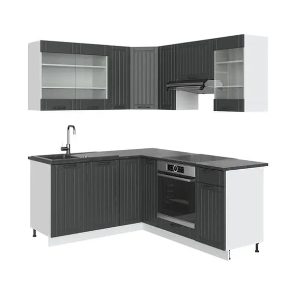MATERIAL: Hörnköket är tillverkat av lättskött 16 mm spånskiva med melaminhartsbeläggning. Alla fronter på köksenheterna är gjorda av högkvalitativ MDF.
